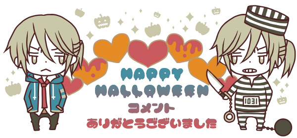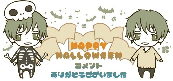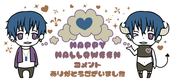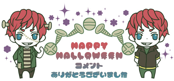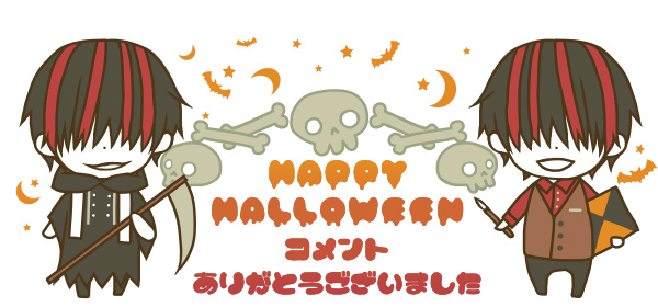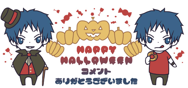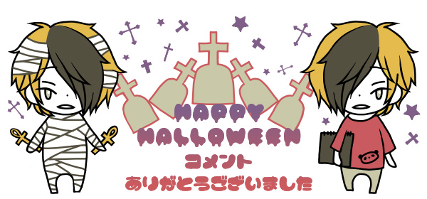 男子化ハロウィン Category:[男子化] Date:2014年10月31日 投稿者: sai カテゴリ: イラ部 投稿日: 2014年10月31日お菓子を集めて墓場でパーリーピーポー!。以前の男子化まとめで描かせて頂いたメンバーを勝手ながらお借りしました。他にも描いて良いよって言う男子化さんがいらっしゃったら、まとめに追加させて頂きたいので是非声をかけて下さい。逆にまとめから外して欲しいという方もいらっしゃったら気軽に声をかけて下さいねー。今回の悪夢街の住民コンセプト(敬称略)。・ドラキュラ88→悪魔城の伯爵。血よりお菓子が大好きなハロウィンの盛り上げ役。企画担当。・死神むらき→悪夢街の町長。死を操るが悪夢街ではあまり意味がなく逆に聖職者のような扱いを受けてしまうのが不満な博識神。・狼男その辺→悪夢街きっての色男。男女人外問わず喰っちまう男前。今はなまこくんの魔力を借りて運命の赤ずきんを探してるとか。・魔法使いなまこ→全部魔法で解決しちゃう只のオシャレ系チート。街を彩る蝙蝠を従えてる。“魔女”と呼ぶと黒微笑を返される。・フランケン羊杏→皆の愛に圧倒的パワーで応える元気っ子。発言は常識人なのに悪戯には常識が無さ過ぎる問題児。・夢魔ひままま→全ての夢を司るる悪魔。桃色の夢ばかり見せてくるのは単なる趣味。今回もお菓子じゃなく薄い本を集める優秀さ。・妖狐さんた→。札を使うのは見た目重視故。陰陽を操れる狐っ子。頻繁に人間界へ遊びに行ってはセレブ生活をしている。・ミイラきだ→十字架や安全ピンがいっぱいついた洋服を着るのに憧れ自分磨きに励んでいる。肌見せが恥ずかしい系男子。・オバケsai→コスプレとしても手抜きと言われるレベルのガッカリ感。“南無”の二文字で成仏しかけるゆるふわボディ。と言うイメージで描かせて頂きました。本能の赴くまま配置したらダークカラーとライトカラーのキャラが固まってた事に彩色段階で気がつきました。普段、大人数を描かないので考えが及びませんでした。あと手抜きに見えないように塗り込んだら逆に可愛くなくて凹みました。超時間かかったのにこの仕打ち(꒪⌓꒪)。慣れない事はするもんじゃないですね。とりあえずマジで5分で集中力が切れるのを治したいです。ハロウィンに間に合って本当に良かった…!(。´ཀ`。)。【沢山の拍手&コメント有り難う御座いました!】ぱららさん→ラバスト!Blu-ray!相変わらず超褒め上手っぷりに号泣!。最近のアニメのデフォルメグッズは凄い可愛いですよねヽ(´▽ `)ノ。1本の線さん→愛とやる気いっぱいです∠( 'ω')/。秋谷さん→ダメダメおばけですが私もゆるふわボディなんか気に入ってます。笑。cnfさん→あのcnfさんに褒めて頂けてソワソワ小躍りが止まりません₍₍ ◝('ω'◝) ⁾⁾ ₍₍ (◟'ω')◟ ⁾⁾。投稿者: 羊杏 投稿日: 2014/10/31 投稿番号:1 わー!!トリックオアトリート!!みなさんのキャラとぴったりでしかもそれがサイさんの絵で見られて朝からとっても幸せになりました(*´▽`*)みなさんすごくかわいいです描いて下さってありがとうございます♪投稿者: なまこだったもの 投稿日: 2014/10/31 投稿番号:2 Trick or Treatですね‼︎saiさんのイラストは画面が鮮やかで見ていて楽しくなりますね‼︎キャラの役職も、それぞれにあっていて...!(●´∀`●)ちなみに僕はリアルでは、魔導師と呼ばれてます。ピタリ賞ですね‼︎素晴らしい‼︎=͟͟͞͞( 'ヮ' 三 'ヮ' =͟͟͞͞) 描いて下さりありがとうございました‼︎投稿者: 逃避H 投稿日: 2014/10/31 投稿番号:3 可愛らしい…!初めまして、逃避Hと申します。saiさんはビビット色をとても綺麗に使われるのですね!そして瞳の塗りが丁寧で大変勉強になります。もし、もしよろしければうちにも最近男子化のメンズがやってきたので、機会があれば絡ませていただきたいです…!(>_<)投稿者: ぶらんく (ID:d0b2c1f5) 投稿日: 2014/10/31 投稿番号:4 はじめまして!ぶらんくと申す者です。以前からsaiさん方が描く男子化の皆さんの面々がとても楽しそうで、草葉の陰からこっそり拝見していました壁|・ω・`)今回も細かくて、可愛いらしくて素敵です‼特に、ふわっとしていてきらきらな色塗りがすごく好きです。今更だと思い控えていましたが、saiさんの寛大なお言葉に後押しされました。是非とも絡ませて頂きたいです!素敵絵ご馳走でした(o^^o)投稿者: むらき 投稿日: 2014/10/31 投稿番号:5 トリックオアトリート!!うわあ素敵な絵がある久しぶりに来たら幸せだ…!しかも塗りもかわいさもすごくてぽかーん…どんどんクオリティがあがっていくので恐ろしいです…!素敵な絵をありがとうございます今年のハロウィンはとっても素敵に楽しめましたヽ(´▽`)/投稿者: さんた 投稿日: 2014/10/31 投稿番号:6 びゃあかわいい!この質感がなんともいえないですね・・・。狐っことかものすごく私得なうえにセンスが光ってますね!いやもう幸せなハロウィンになりました。ありがとうございました!投稿者: 88 投稿日: 2014/11/1 投稿番号:7 まさかsaiさんの男
