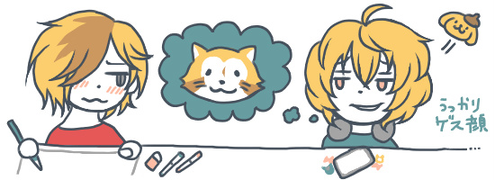 男子化自分用メモ Category:[男子化] Date:2014年08月27日 投稿者: sai カテゴリ: イラ部 投稿日: 2014年8月27日自分用メモとして男子化をミニキャラにしておきます。皆さまのカッコイイ男子化非常に眼福でした。男子化した皆さまがイメージ通り過ぎ&俺得過ぎてジタバタしました。4人もいるとイラストブック部…略してイラ部の日常をゆるゆる描くヒーリングアニメ的なイメージが密かに頭をよぎります。ドSでコミュニケーションの達人で皆の繋ぎ役の88くんを主人公にバスケ部に入れや!と言いたくなる長身ハイスペックな爽やかクールむらき部長とお絵かきへの愛なら誰にも負けない恥ずかしがりやなバイリンガルイケメン木田くんとイラ部が好きだから居座ってるだけでこれと言った活動をしてない寂しがりなsaiくんが織りなす青春サクセスストーリー……になるかどうは不明です。たまに見知らぬぽっちゃりした男子も現れるが正体は不明だとか。昔、部室で亡くなった部員の幽霊だとか、むらき部長の裏の顔だとかまことしやかに噂されるイラ部の七不思議の1つ。あぁぁ…そして私の楽しい楽しい8月が終わってしまうー!。9月も何かしら絵が描けると良いな!。出来ればワールドトリガー強化月間にしたい……!。投稿者: むらき 投稿日: 2014/8/28 投稿番号:1なんとなく男子化きださんとsaiさん雰囲気が似てそうですそして88男子とむらき男子キャラだけ見ると喧嘩してそうですw太ましいむらきふとましくんはあれですよ幽霊とかじゃないでしょうかきださんとおなじでマルマンスケブ持っているのでお互いの間違えって持って帰ってしまってそうです。投稿者:sai 投稿日:2014/8/28 投稿番号:2 違うよ!むらき部長と88くんはお互いに背中を預ける、好敵手と書いてライバルと呼ぶ親しき間柄だよ!。笑。や……やっぱり、ふとましくんは幽霊(仮)なんだ…!。良かった……むらき部長の本体説は無かったんやー(棒読み)。ふとましくんを見れた人は絵が上手くなるなると言う都市伝説もありそうです。>>きださんとおなじでマルマンスケブ持っているのでお互いの間違えって持って帰ってしまってそうです。 !!!!!!なにそれめっちゃ萌える…!はぁはぁ。って言うか下書きではちゃんとスケブ持ってたのにむらき部長、手ぶらになってる!。描き足ししておきます。木田くんとsaiくんは身長と髪色が実は同じなので差別化が必要です。笑。投稿者: sai 投稿日: 2014/8/28 投稿番号:3 ぐぅ……画像を上書きしたら縮小されたぜ。投稿者: 88 投稿日: 2014/8/29 投稿番号:4わわわわわわわ!!!saiサァァァァアアアアアアアンンンン//////皆さんの男子化ミニキャラきゃわわです!saiさんの皆さんの設定////主人公はさみしがりやsaiくんで、皆に可愛がられてたらいいよッ皆の繋ぎ役はsaiくんのがぴったりですよ☆イラ部で一番活動してなさそうなのは88くんですね常おかし食べているそうですし_(:3 」∠)_ハイスペック爽やかむらき部長には頭が上がりませんねっ!はずかしがりやなイケメン木田くんも皆にかまわれまっくてはずかしがってたら可愛い//// ほんとに素敵な設定ありがとうございますっ(˘ω˘)おかげで顔がゆるみまくって、大変です投稿者:sai 投稿日:2014/8/29 投稿番号:5 わーい88さん!。コメ有り難う御座いますー!。自分で設定を書いておいて自分で萌え始めると言う今、非常にヤバい状態に私、陥ってます。saiくんの周りへの絡み方はウザい系なので、主人公にした場合アニメ雑誌の嫌いな主人公No.1の栄冠に輝けそうです。なので主役を任せられるのは“実は兄キャラ”な88くんしかいない!。ドSに振舞えるのは皆の事をわかっている気遣いが出来る人の印!ですよ。88くんはいつ絵を描いてるのか皆もよくわかってなさそう。努力を見せない系男子!。88くんは「まず画材を用意します」→「ざっくりアタリをとり…」→「そのまま適当に色も乗せていきます」→「そして完成したものがこちらになります~」と言う3分クッキング的なイラスト工程を見せて皆を驚かせてそうなイメージです。笑。そしてむらき部長の安心感は凄い。権力者オーラが凄い。生徒会長も兼任してそう。笑。木田くんの恥ずかしがり屋っぷりは絶対みんなに遊ばれちゃいますよね。私……今度、勝手に88くんも描かせてもらうんだ…!。笑。投稿者: sai 投稿日: 2014/9/4 投稿番号:6 と思ったのがきっかけ。投稿者: sai 投稿日: 2014/9/4 投稿番号:7 投稿者: sai 投稿日: 2014/9/4 投稿番号:8 公開するタイミングを完全に逃してしまっていた絵コメでした。体調不良で癒しが欲しかったのです。投稿者: sai 投稿日: 2014/9/4 投稿番号:9 PR
