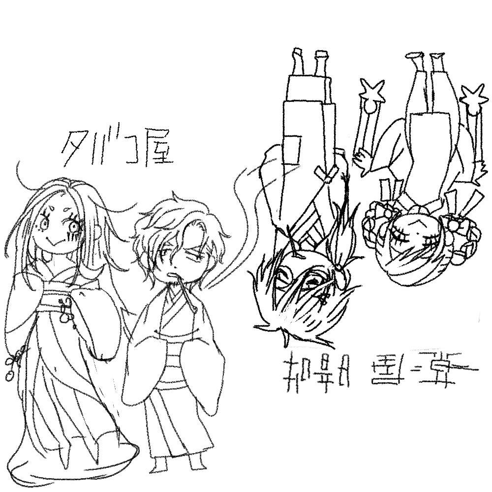 とりあえず煙草屋と薬屋のラクガキ置いておきます。...